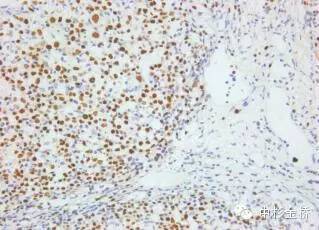 圖為EBER原位雜交染色DBA顯色,蘇木素復(fù)染